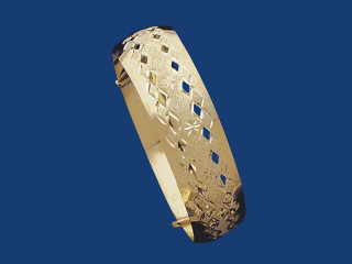 14K ADJ. D/CUT BANGLE BRLT. 23.0GR.